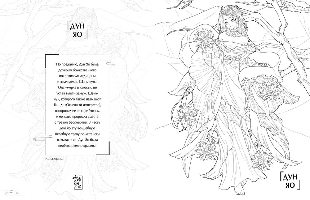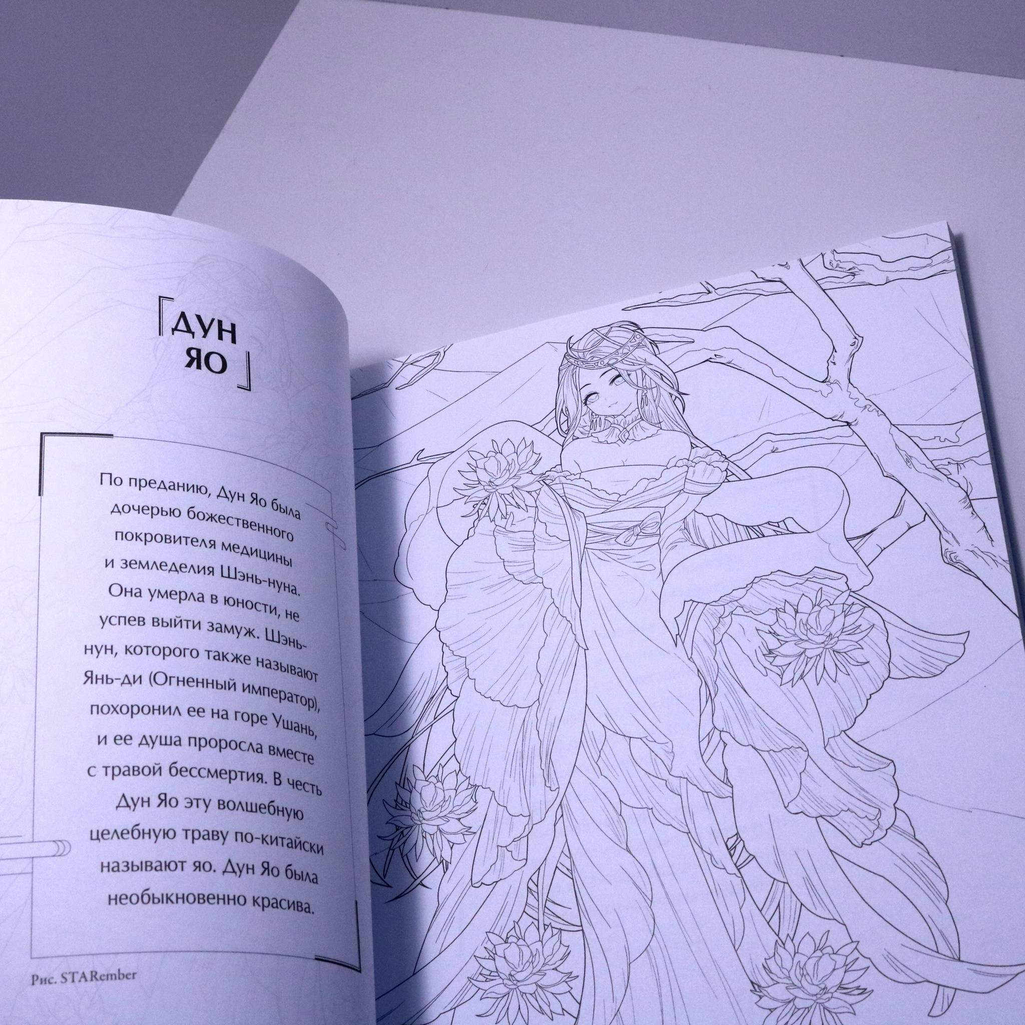 Эта раскраска в стиле маньхуа предлагает уникальный и увлекательный взгляд на богатые мифологические традиции древнего Китая.