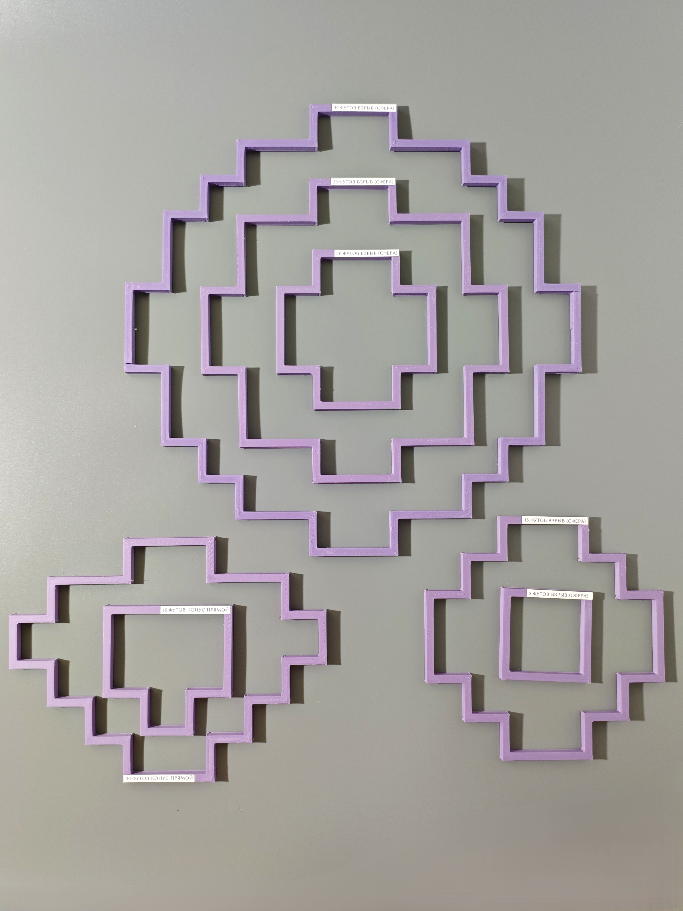 - взрыв (сфера) 5, 10, 15, 20, 30 футов;