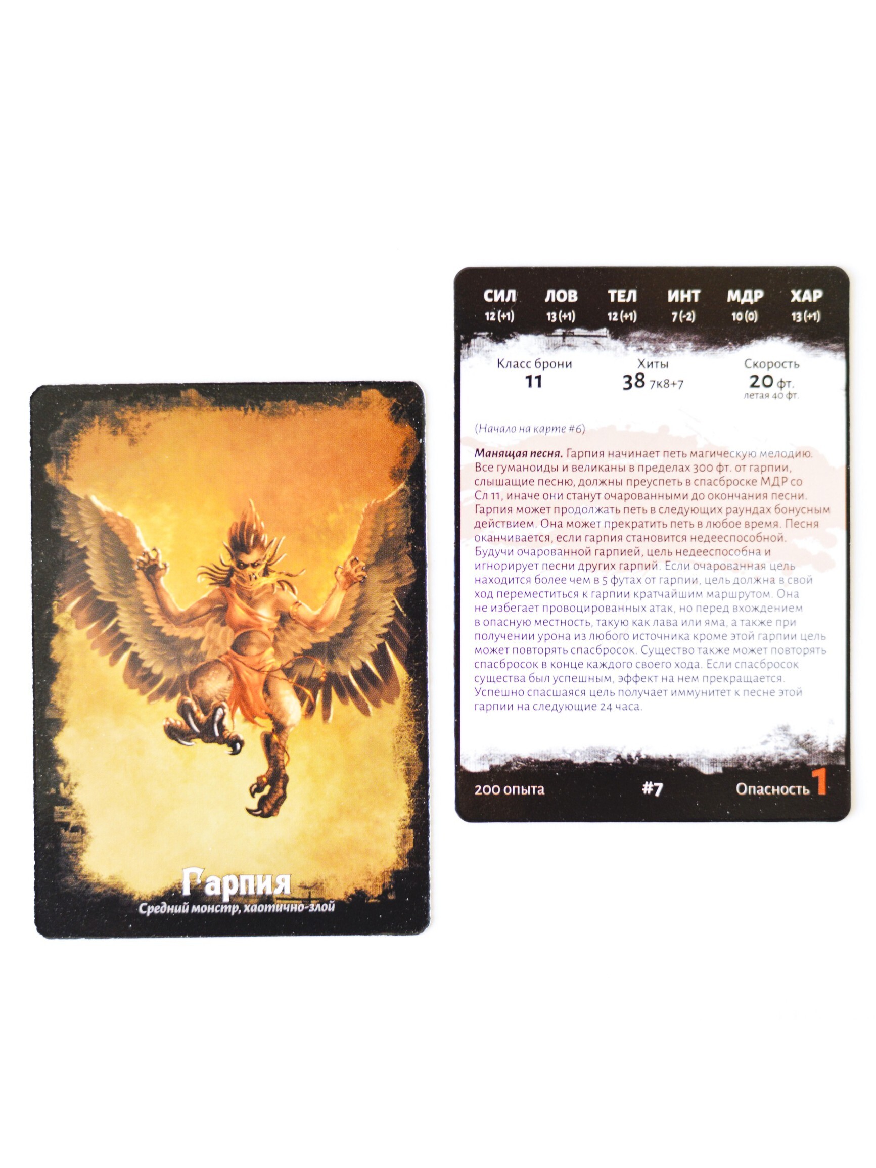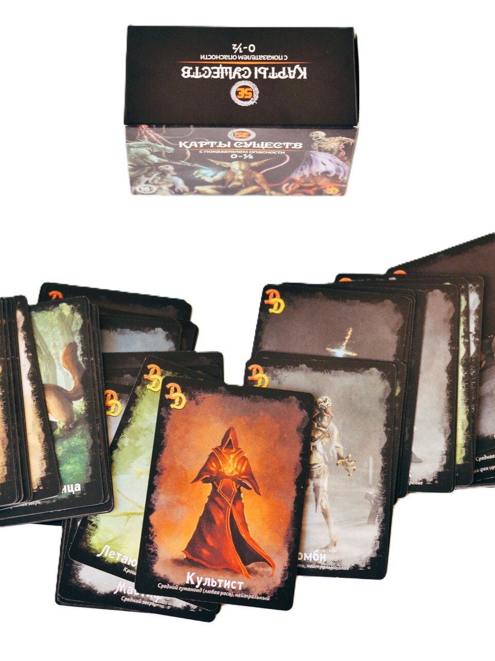 Полный (на данный момент) набор карт с описанием существ из настольной ролевой игр «Подземелья и драконы» (Dungeons & Dragons 5e). Набор состоит из двух коробок с 254 плотными картами, на которых изображены 210 существ с рейтингом опасности от 0 до 4.