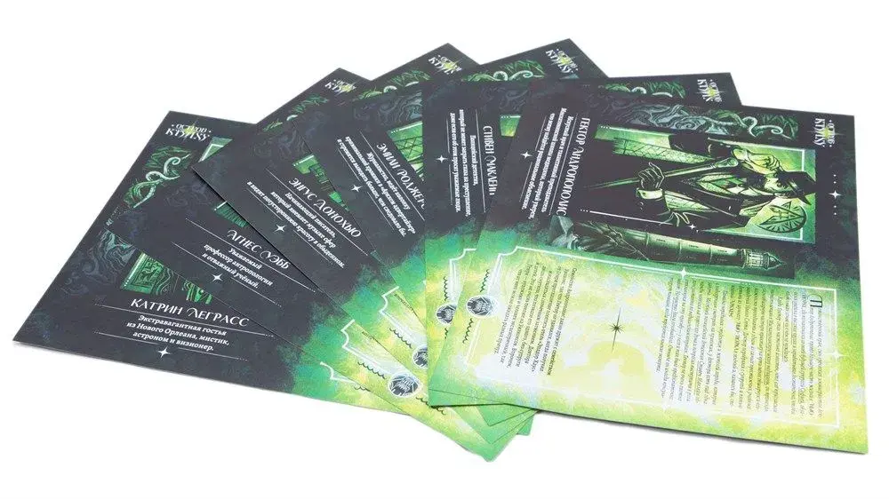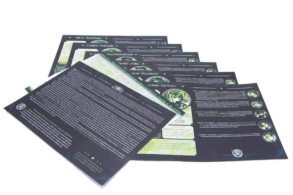 Минималистичная игра в жанре лавкрафтианского ужаса, правила которой умещаются на ширме. Шесть отважных героев, готовых заняться исследованием неописуемого. Детективная история, рассчитанная на 2 – 6 участников, включая ведущего