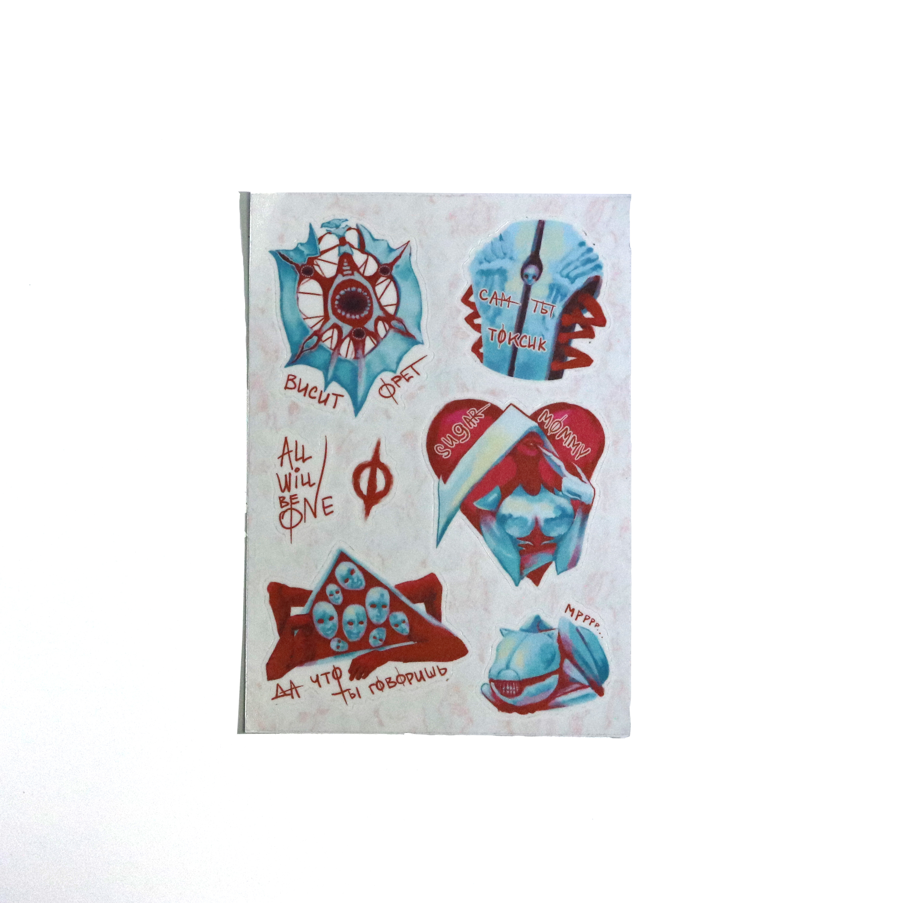 Набор стикеров «Фирексия» способствующий достижению рукотворного совершенства. Преврати ноутбук в идеальный сплав наклейки и техники. Устрани пустые поверхности на обложке тетради. Стремись к эффективному наклеиванию во имя наклеивания.