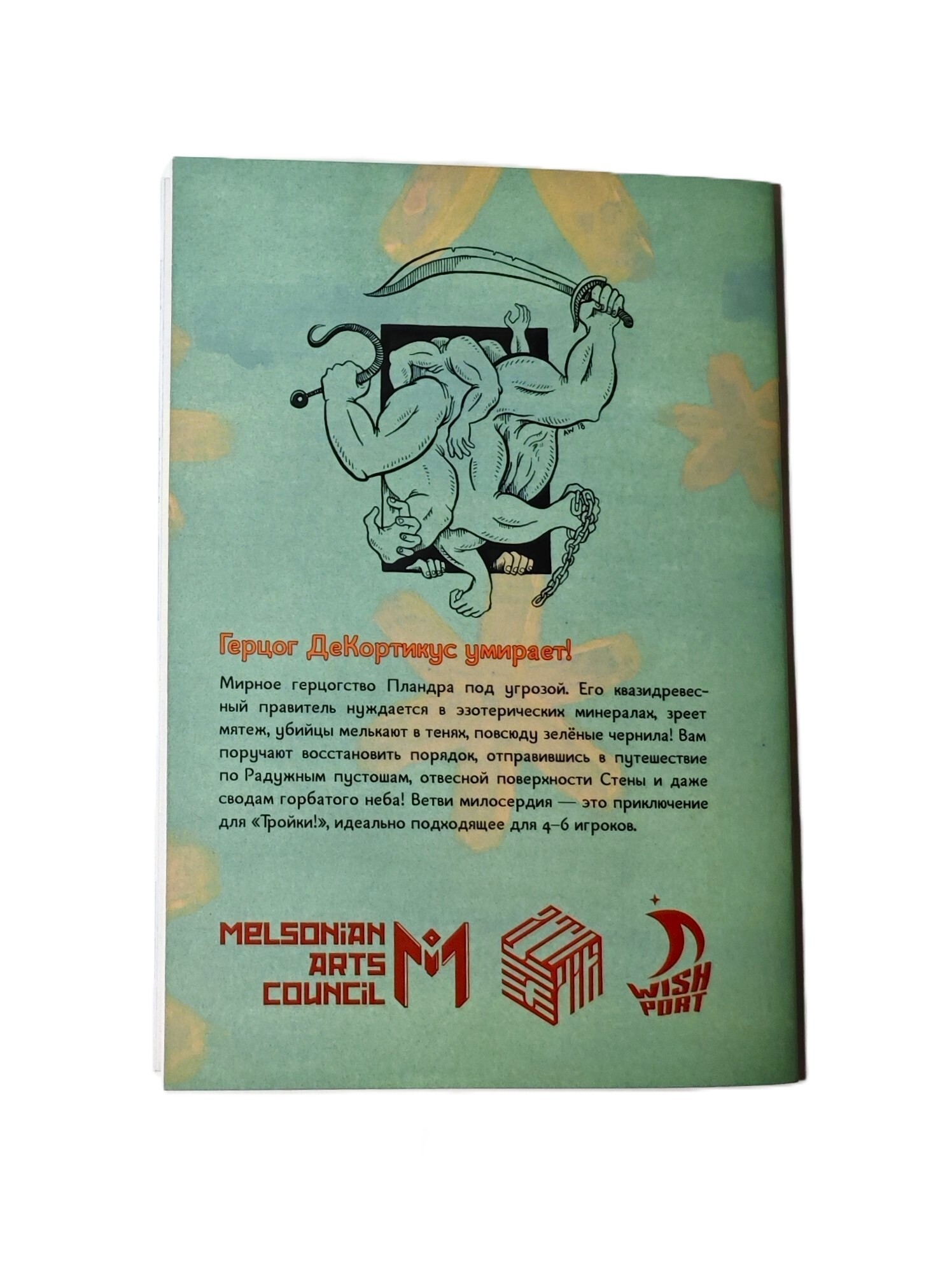 Мирное герцогство Пландра под угрозой. Его квазидревесный правитель нуждается в эзотерических минералах, зреет мятеж, убийцы мелькают в тенях, повсюду зелёные чернила! Вам поручают восстановить порядок, отправившись в путешествие по Радужным пустошам, отвесной поверхности Стены и даже сводам горбатого неба!