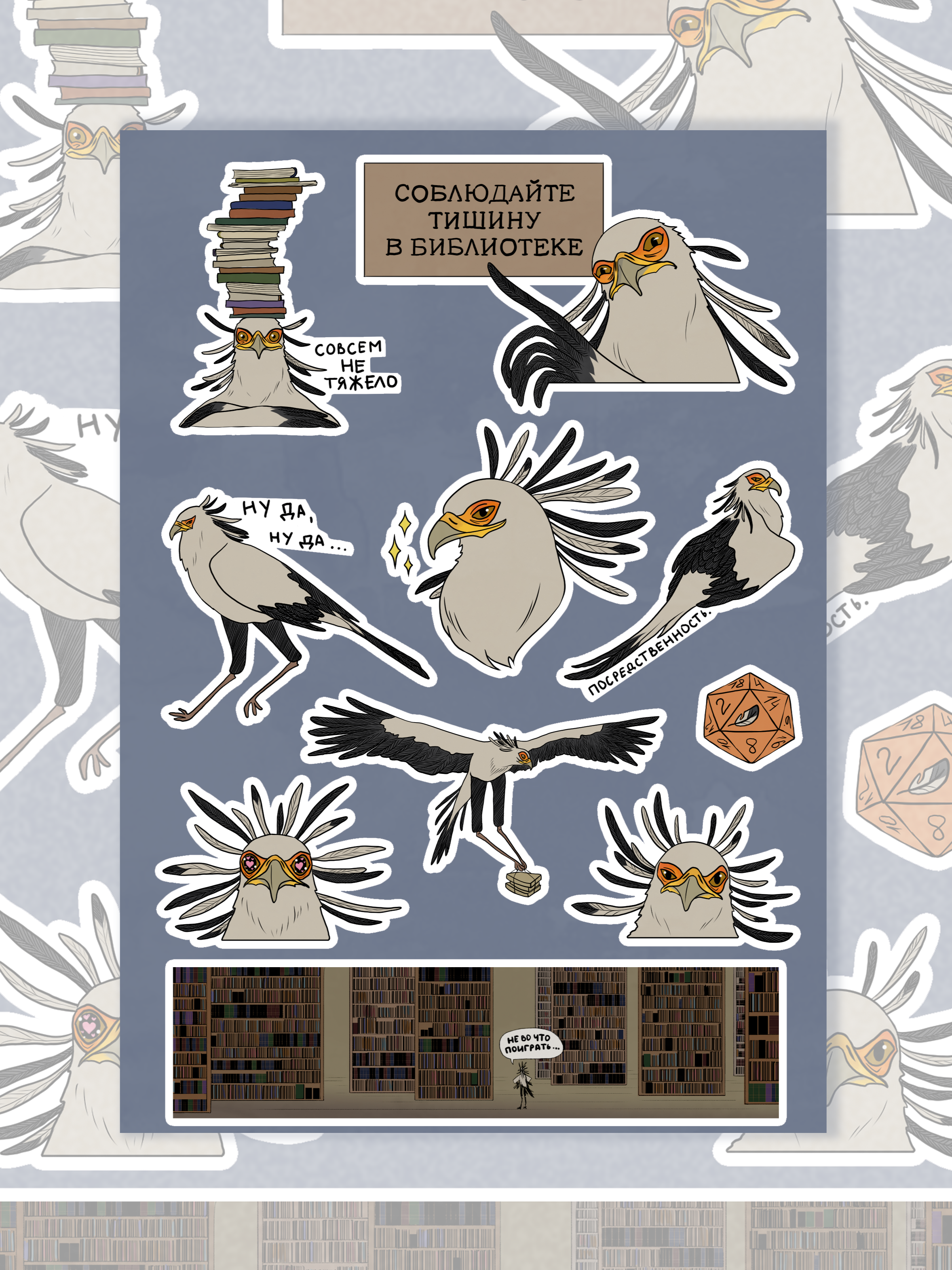 Это идеальный стикерпак для тех, кто хочет познакомиться с пернатым книгохранителем поближе.