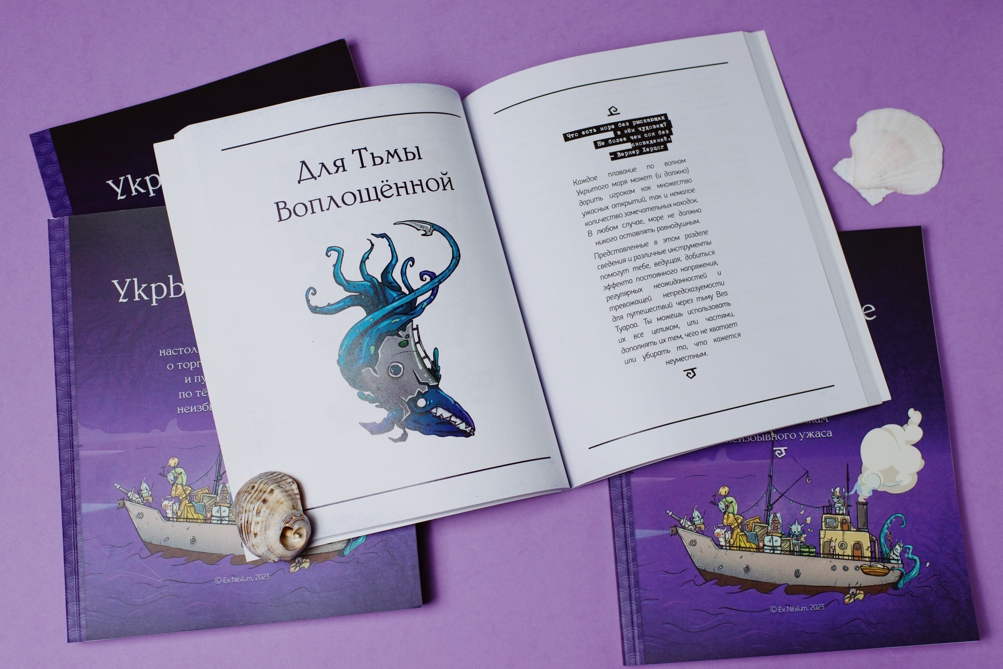 «Укрытое море» — это настольная ролевая игра издательства Ex Nihilum, посвящённая авантюрной торговле и рискованному исследованию тёмного, загадочного моря. Проект изначально был вдохновлён видеоигрой Sunless Sea, однако, его нельзя назвать адаптацией. Здесь вы найдёте совершенно новый, самобытный мир и авторскую систему правил. Бороздите гексы, срывайте куш и постарайтесь не ввязываться ни в какие сражения: они тут особенно опасны.